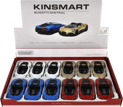 fém autómodell Kinsmart Bugatti Mistral 13 cm visszahúzós meghajtással és nyitható ajtókkal