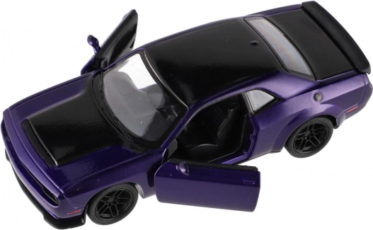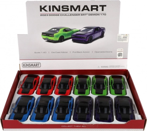 Élvezze a zsebméretű amerikai izomautó erejét. Ez a részletgazdag Kinsmart Dodge Challenger SRT Demon 170 (2023) modell kb. 13 cm-es méretarányban fém kivitelű, nyitható ajtókkal és visszahúzós meghajtással a fürge száguldáshoz. Négy markáns színben kapható, játékhoz és kiállításhoz egyaránt ideális.