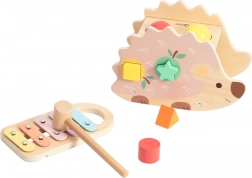 Vidám fa sün két funkciót rejt magában, amelyeket a gyerekek imádnak. Ezzel a játékkal gyakorolhatják a pontosságot a színes formák beverésénél, miközben felfedezik a xilofon rejtett hangjait. Játék és zene kombinációja:
