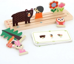 Logikai fa kirakó játék gyönyörű illusztrációkkal Ingela P. Arrhenius-tól, ideális a térbeli képzelőerő, logikai gondolkodás és a finommotoros készségek fejlesztésére. A fa elemek és játékkártyák segítségével a gyerekek megtanulhatják észlelni a térbeli viszonyokat, mint balra, jobbra, felül és alul a feladat szerint.
