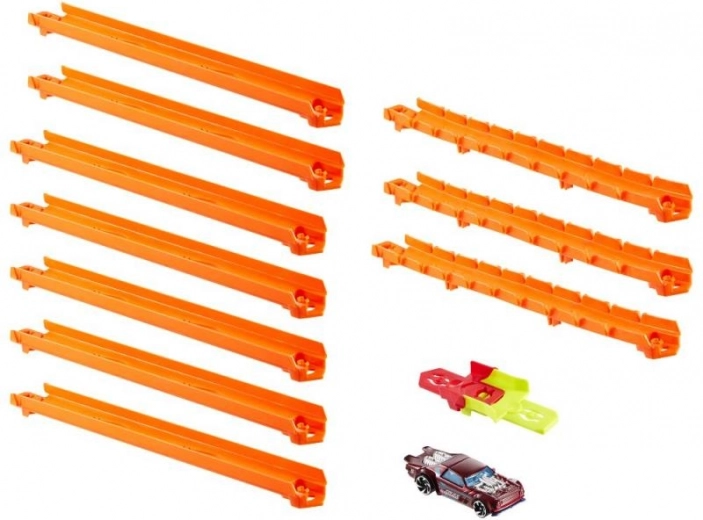 Engedd szabadjára a kreatív versenyzést a Hot Wheels Track Creatorral. A készlet kb. 3 m ikonikus, narancssárga Speed Snap pályát kínál, amely tetszés szerint kombinálható. Három rugalmas elem (kb. 30 cm) és hét merev egyenes (kb. 30 cm) segítségével egyszerű sprinteket és hosszabb pályákat is megtervezhetsz, más szettekhez csatlakoztatva.