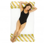 Ergonomikus kialakítás: Két felfújható párna és rugalmas, légáteresztő nylon háló kombinációja félig vízben meredő pozíciót biztosít, ami természetes hűsítést és kényelmes napozást tesz lehetővé.