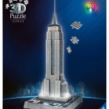 Fedezze fel a szórakozást és a kikapcsolódást egyben a RAVENSBURGER 3D puzzléval – a Empire State Building élethű modellje ragasztó nélkül. A masszív műanyag elemek stabil 3D szerkezetet alkotnak, amely remekül mutat a polcon. A csomag része egy állvány/talp a kész modell kiállításához.