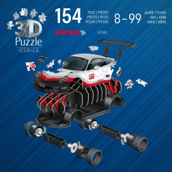 A modell működő, forgó kerekekkel és erős belső vázzal rendelkezik, amely a készre szerelés után maximális stabilitást biztosít. Ideális ajándék Porsche rajongóknak, autósportrajongóknak és a 3D puzzle kedvelőinek.