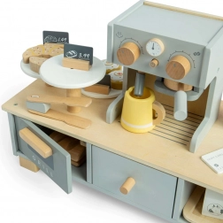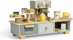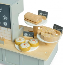 A Bigjigs Toys gyerekkávézó készlettel gyermeked kreatív baristává válhat. A készlet széleskörű kiegészítőket kínál, mint például egy kávéfőző gép, kiszolgáló pult grillel, tárolófiók és sok ínycsiklandó kiegészítő, mint sütemények, csészék, csészealjak, valamint elvitelre szánt kávéscsészék.