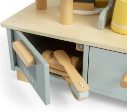 A gyerekek használhatják a fa bankkártyát és a terminált, mint egy igazi kávézóban. Ez a készlet órákig tartó szórakozást nyújt, és lehetővé teszi a nyelvi és szociális készségek fejlesztését.