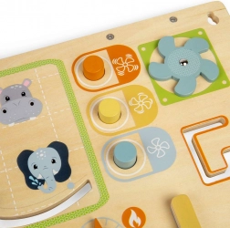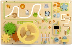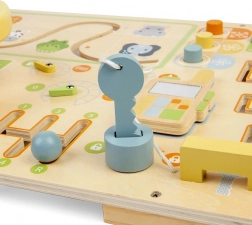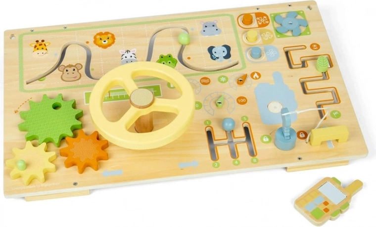 Ez a aktivitási deszka különféle tevékenységekkel van tele, mint például gombok, labirintus, fogaskerekek, forgó és csúszó elemek. Fejleszti a finommotorikus képességeket és a kéz-szem koordinációt, problémamegoldó készségeket fejleszt és megérteti az ok-okozati összefüggéseket. A gyerekek játék és szórakozás közben tanulnak!