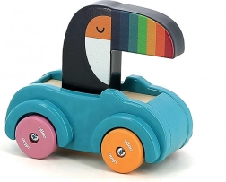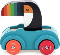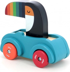 A fából készült autócska dudával ideális játék kisgyermekek számára. A színes kerekek és a színes csőrű tukán révén vonzza a figyelmet és szórakoztató játékélményt nyújt. A tukán fejére nyomva megszólaló duda interaktív élményt nyújt a totyogóknak, növelve érdeklődésüket és javítva koordinációs képességeiket.