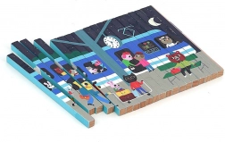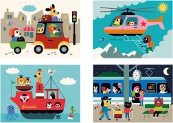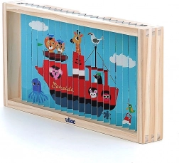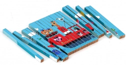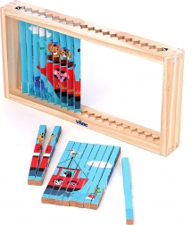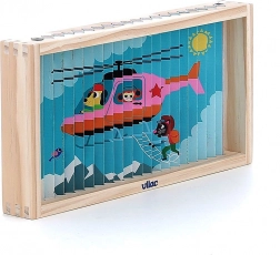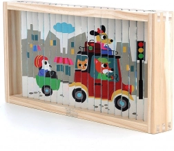 Fedezze fel a világot különböző szögekből ezzel a négydimenziós fa kirakóval. Ingela P. Arrhenius terveinek köszönhetően négy különböző illusztráció várja: autó, hajó, helikopter és vonat. A fa rudak beillesztésével a gyermek nemcsak a rejtett képeket fedezi fel, hanem fejleszti a logikus gondolkodás és a megfigyelőképességek.