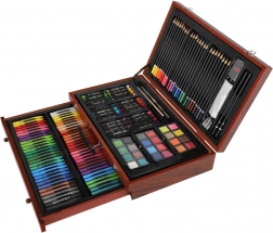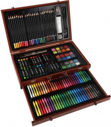 Ez a gazdag képzőművészeti készlet remek választás kezdőknek és haladóknak egyaránt, akik mindent egy helyen szeretnének. A kompakt fa koffer áttekinthető tárolást és könnyű hordozhatóságot biztosít, így alkothatsz otthon, az iskolában vagy útközben.