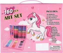 Ez a gazdagon felszerelt rajzkészlet minden kis művészt elvarázsol. Az unikornisos dekor első pillantásra megragadja a figyelmet, a praktikus műanyag bőrönd pedig mindent egy helyen, rendezetten tart. A széles színválaszték és az írószertípusok sokfélesége miatt a készlet tökéletes rajzoláshoz, festéshez, színezéshez és az első művészeti projektekhez.