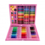 Fedezze fel a fantázia világát ezzel a unikornisos kreatív festőkészlettel. A praktikus műanyag bőröndben 160 rajzeszköz található – színes ceruzák, filctollak, zsírkréták, vízfestékek és egyéb kellékek, amelyek támogatják a kreativitást és a finommotorika fejlődését. Ideális otthoni alkotáshoz és utazáshoz a kompakt méreteknek és az áttekinthető tárolásnak köszönhetően.