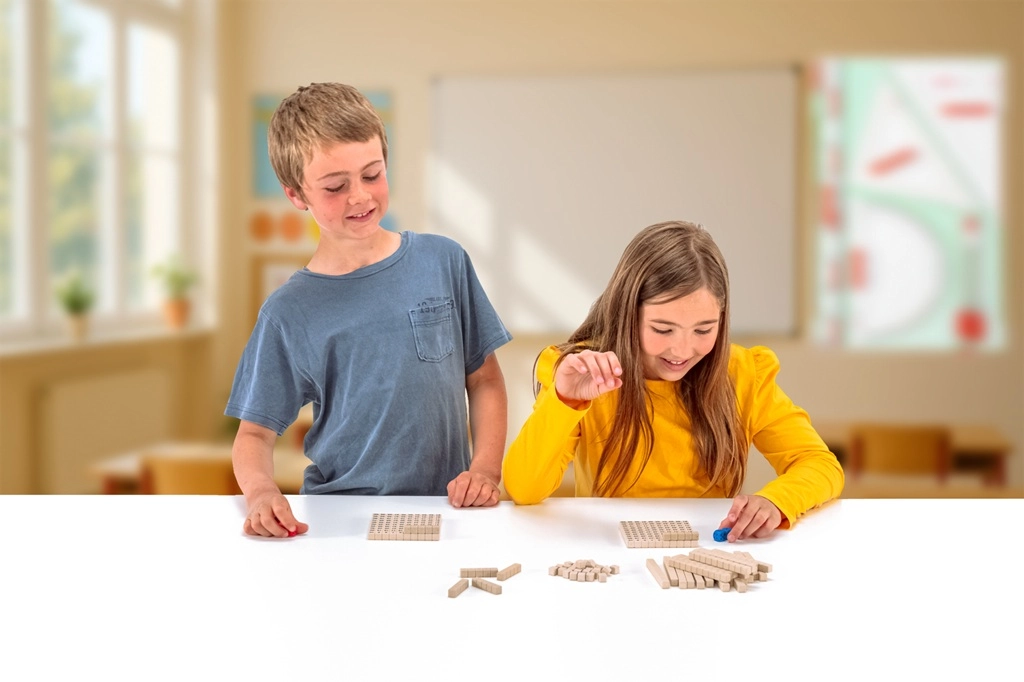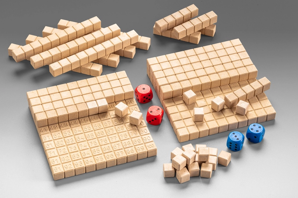 A csomag tartalma: két táblát számokkal, 22 tízes pálcikát, 6 ötös pálcikát, 28 egységnyi kockát, piros és kék dobókockákat, és több nyelvű útmutatót. A játék alkalmas önálló vagy csoportos munkára.