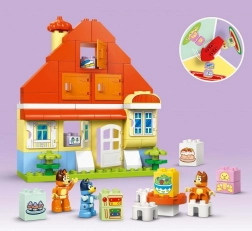 Ez az oktató építőkészlet óvodásoknak támogatja a memória, a koncentráció, a kéz–szem koordináció és a összehasonlító készség és kommunikáció fejlődését. A csomagban a sorozatból ismert részletek is megtalálhatók, például a Nyuszi Klapcsa. A szett ideális ajándék 3 éves kortól, és remekül kombinálható más LEGO DUPLO és LEGO Bluey készletekkel.