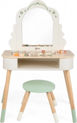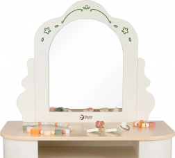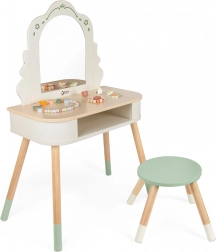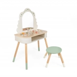 Fa toalettasztal a Classic World-től kifejezetten kis lányok számára tervezett, akik saját sarkot álmodnak meg, ahol sminkelhetnek és öltözködhetnek. Tartalmaz egy kerek ülőkét, tükröt és különféle kiegészítőket, amelyek segítik a képzelőerejük és kézügyességük fejlesztését.