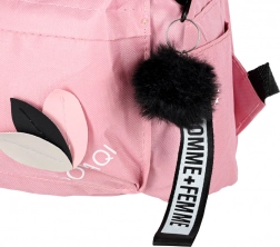 Fekete pomponnal és HOMME+FEMME szövetpánttal van felszerelve, amelyek egyedi stílust kölcsönöznek a hátizsáknak.