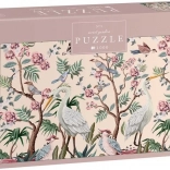 Fedezze fel a rejtélyes kert szépségét ezzel a 1000 darabos kirakóval, ahol a madarak a virágzó fák között szárnyalnak. Tökéletes a természet szerelmeseinek és puzze gyűjtőknek.