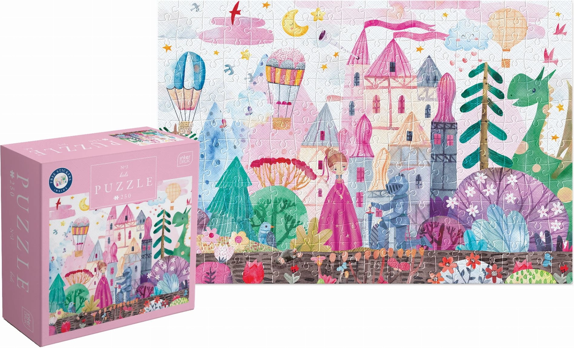 Élvezze a rengeteg szórakozást a Kastély puzzle-kal 250 darab, amelyek egy matricalapot is tartalmaznak a még nagyobb kreativitás érdekében!