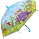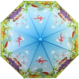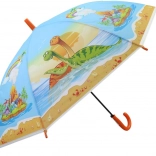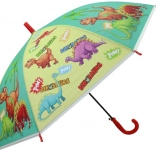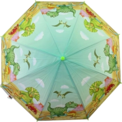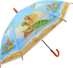 Dinoszauruszokkal díszített esernyő ideális választás a 3 éves kortól fiatal kalandorok számára. 65 cm hosszú és 80 cm széles, megbízható védelmet nyújt az eső ellen, valamint könnyű kezelhetőséget biztosít könnyű műanyag szerkezetének köszönhetően.