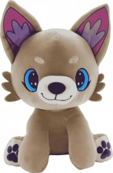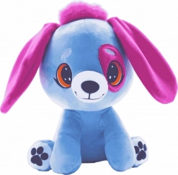 Plüss játék nagy kék fülekkel és élénk szemekkel, amelyet a gyerekek imádni fognak puhasága és melegsége miatt.