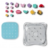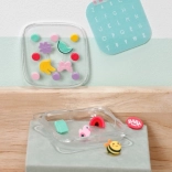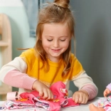 Színes, könnyen felpattintható díszek készlete, amellyel a gyerekek hangulatuk szerint változtathatják a kenguru megjelenését. A csomag része egy tárolódoboz is.