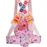 A BABY born kenguru puha és kényelmes hordozó kiegészítő, amellyel a gyerekek bárhová magukkal vihetik kedvenc babájukat. A széles, párnázott pántok fokozatmentes állítással könnyen igazíthatók különböző testméretű gyerekekhez, és biztos, stabil hordozást nyújtanak. A stílust játékos pattintható díszek teszik teljessé, amelyeket hangulat szerint cserélhetnek, a tárolásukhoz pedig praktikus doboz tartozik.