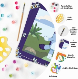 Válj művésszé a CreArt segítségével, és töltsd meg otthonodat az Bluey népszerű sorozat aranyos motívumaival. Ez a kreatív készlet órákig tartó szórakozást és kihívást nyújt a számok szerinti pontos kifestés formájában.