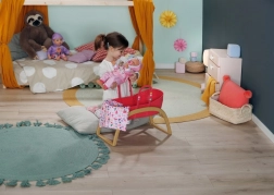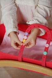 A színes gombok könnyen a fogantyúkra és a kosár peremére pattinthatók. A gyerekek újra és újra személyre szabhatják az ágyat, fejlesztve a fantáziájukat.