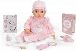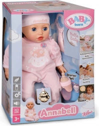 Ismerkedj meg a BABY born Annabell 43 cm babával – puha, ölelni való barát a mindennapi játékhoz és bújáshoz. A elektronikus funkcióknak köszönhetően élethűen mozgatja a száját, nyitja és csukja a szemét, reagál a cumira és a cumisüvegből való etetésre, ringatással elaltatható, és vicces hangokkal lep meg csiklandozáskor vagy a „babatorna” közben.