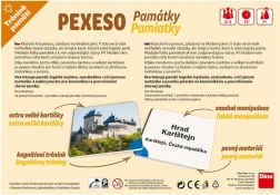 A Pexeso Emlékhelyek hagyományos szórakozást nyújt párok keresésében, ahol a játékosoknak meg kell találniuk az emlékhely fényképét és annak megfelelő nevét. Minden név cseh nyelven van, a játék támogatja a memória, a logikus gondolkodás és a finom motorika fejlődését. A játék könnyen elérhető idősebb játékosoknak és kisgyermekeknek is, a kártyák színezett sarkainak köszönhetően, amelyek megkönnyítik a keresést. Főbb jellemzők: