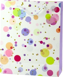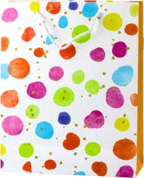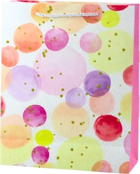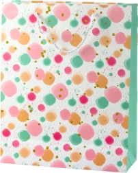 Ez az ajándék táska eredeti dizájnjával és egyedi karakterével hívja fel magára a figyelmet, amely egyedülálló megjelenést kölcsönöz az ajándékának. Finom pasztell és neon pontok arany részletekkel kombinálva alakítanak ki kifinomult és elegáns megjelenést.