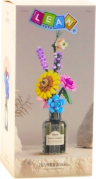 Bemutatjuk az eredeti építőkészletet, amely lehetővé teszi egy lenyűgöző színes csokor létrehozását különböző virágokból. A főszerepet a napraforgó játssza, melyet kék rózsa, lila levendula és pasztell szegfű egészít ki. Ez a kompozíció ideális dekoráció nyári és otthoni környezetbe.