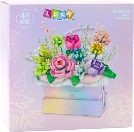 Romantikus virágkompozíció építő kockákból, díszítő dobozban LED világítással, ideális választás mindenki számára, aki szereti az elegáns dekorációkat és a kreatív szórakozást.