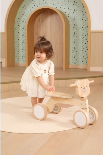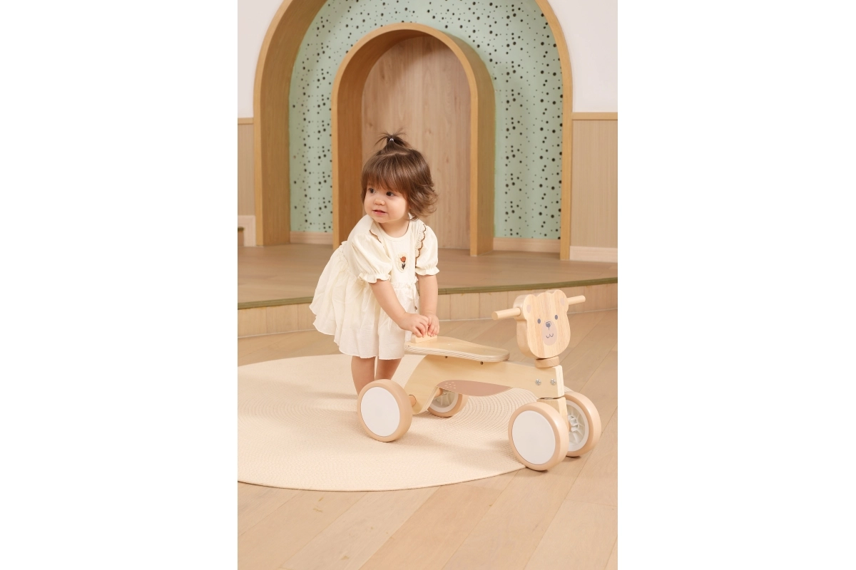 A VIGA márka PolarB sorozatának bájos, fából készült futóbiciklije mackófejjel már 12 hónapos kortól támogatja a kicsik első gurulásait. A stabil, négykerekű alap, a hirtelen kormánymozdulatok ellen védő biztonságos kormányütköző és a padlókímélő, csendes EVA kerekek kényelmes és biztonságos haladást biztosítanak otthon és a szabadban egyaránt. A természetes fa megjelenést és a barátságos mackó dizájnt a gyerekek azonnal megszeretik.