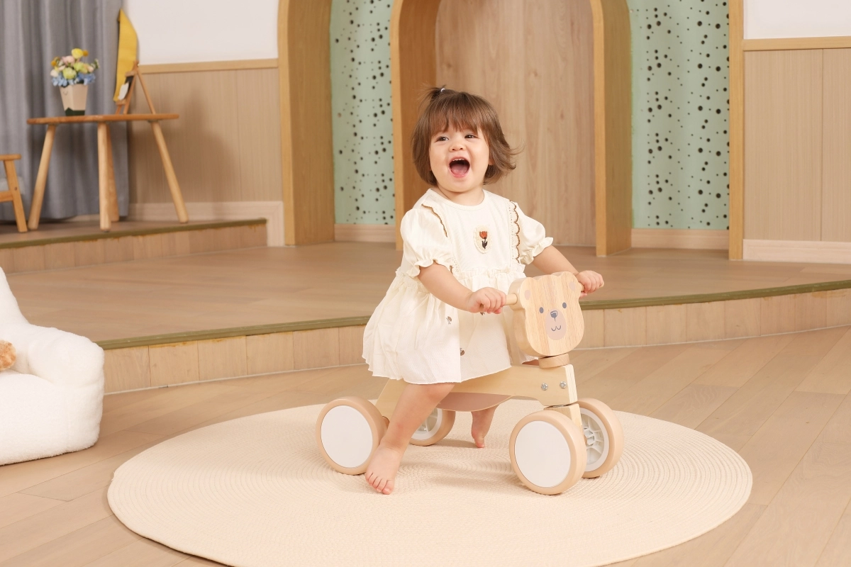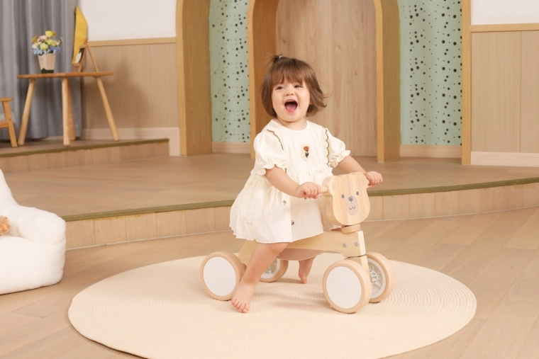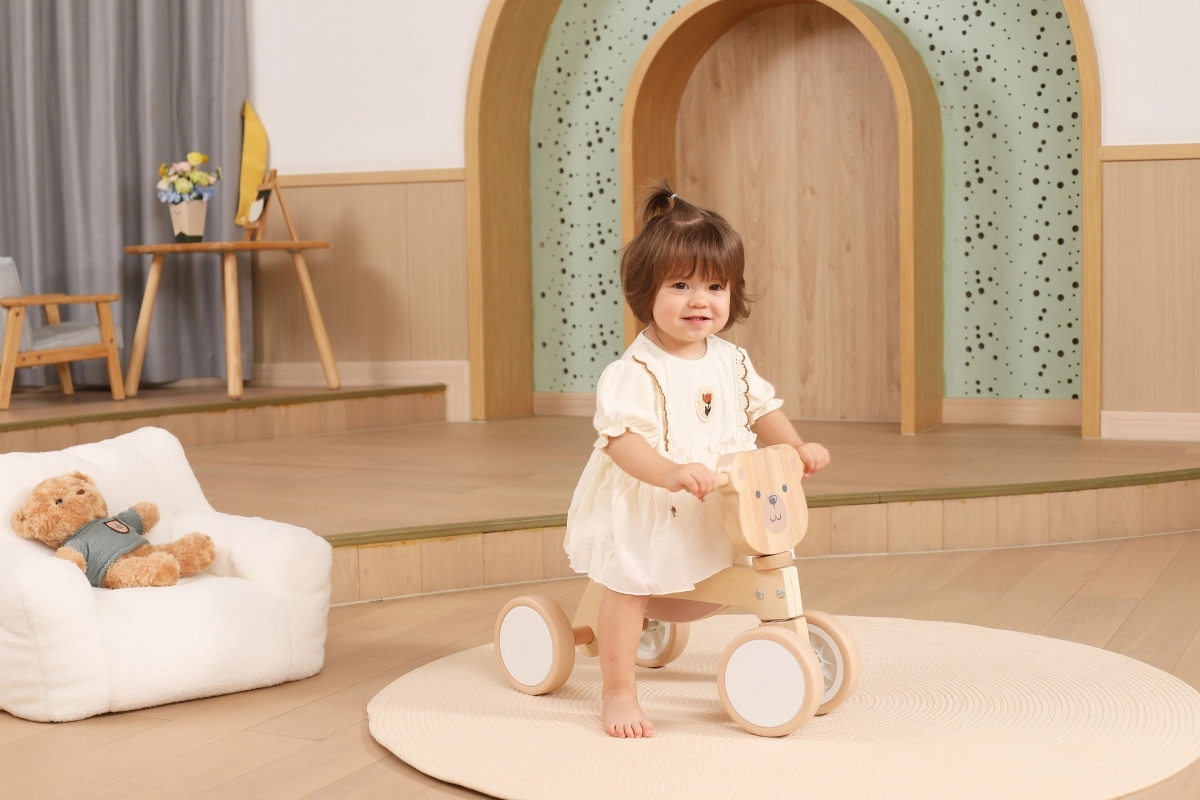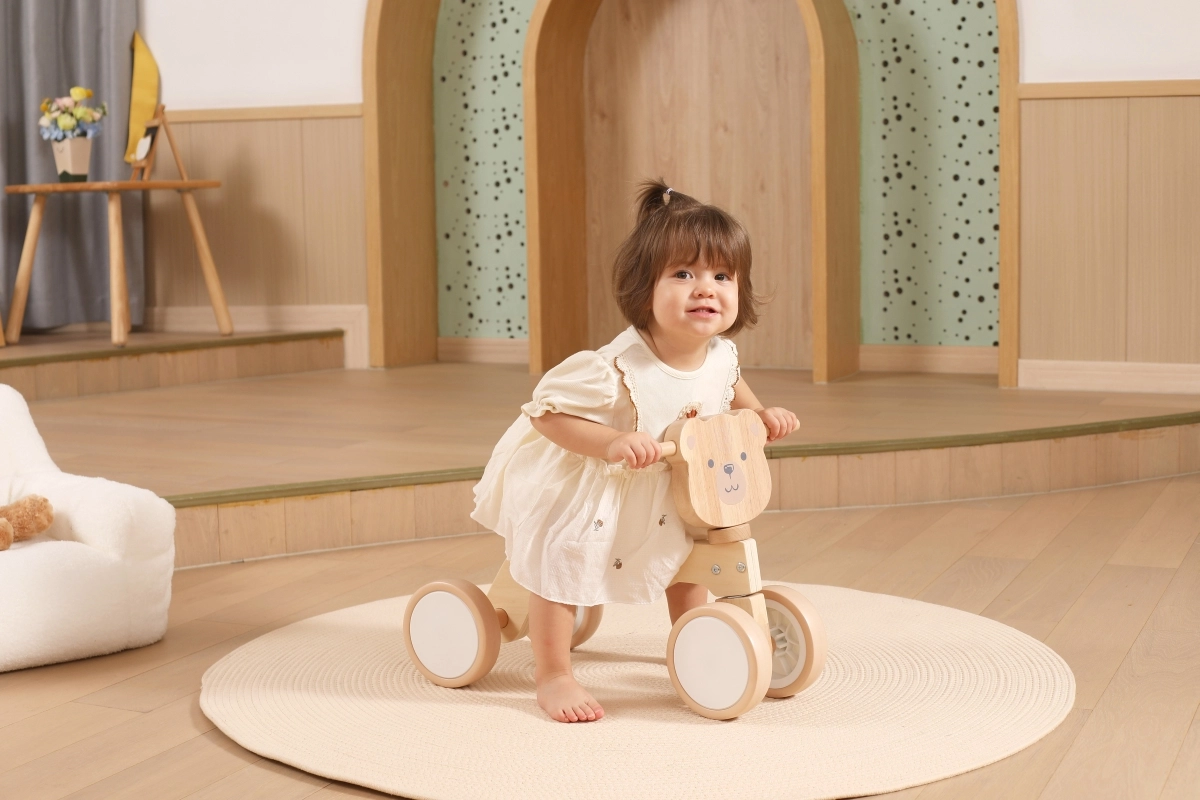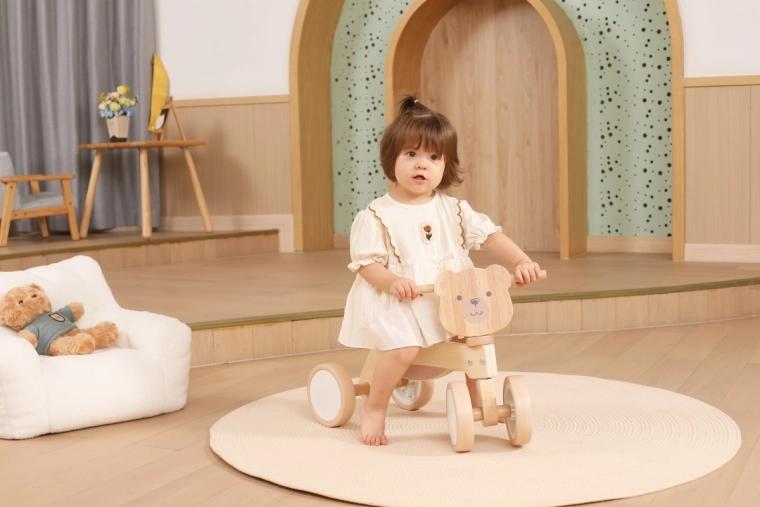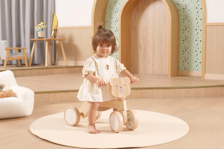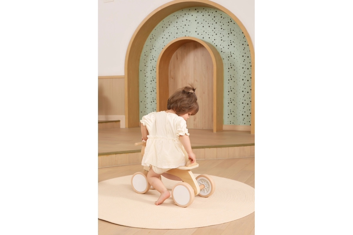 A VIGA PolarB futóbiciklit azoknak a kicsiknek tervezték, akik most tanulják az összehangolt mozgást és az egyensúlyt. A masszív fa szerkezet, az alacsony ülés háttámasszal és a sima, lekerekített élek minden elrugaszkodásnál biztonságérzetet adnak. A négy, széles EVA kerék halkan gurul és nem karcolja a padlót, így ideális beltérre és sima kültéri felületekre is.