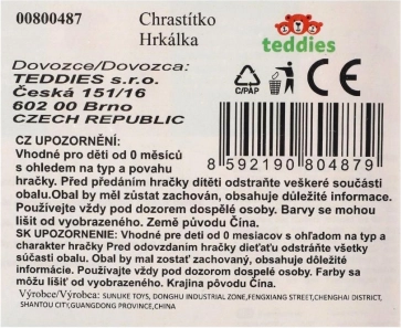 A csörgő mérete 8 × 8 cm, ami ideális a kis gyerekkéznek.