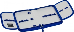 A szett része az egyszintes tolltartó két lehajtható füllel és minőségi YKK cipzárral, amely áttekinthető tárolást kínál az írószereknek (töltet nélkül). A praktikus tornazsák zsebbel és karabinerrel könnyen a hátizsákra rögzíthető; erős zsinórjai lehetővé teszik a háton hordást és a gyors zárást.