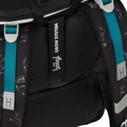 A táska hátrésze három méretben könnyen állítható, így már az 1. osztálytól tökéletesen illeszkedik, a párnázás és a szellőzés pedig támogatja az egészséges testtartást.
