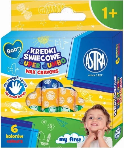 A kiváló minőségű ASTRA jumbo viaszkéták intenzív, telt színeket és finom, egyenletes vonást biztosítanak. Összetételüknek köszönhetően nem koszolják a kezet, szagtalanok, nem törnek, nem ragadnak és nem bocsátanak ki káros anyagokat. Remekül használhatók papírra, kartonra és fára is.
