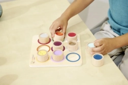 Ez a Montessori tapintótábla úgy lett megtervezve, hogy a gyerekeket aktív felfedezésre és a különböző felületek és textúrák összehasonlítására ösztönözze. A kilenc különálló henger változatos érzékszervi élményt nyújt, amely fejleszti a tapintásos észlelést, a koncentrációt és a szem–kéz koordinációt.