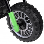 Stílusos tricikli, terepmotorok által inspirálva, élénk színekkel és figyelemfelkeltő matricákkal, amely elbűvöli a kis sofőröket. Kompakt méretei ideálisak lakásba és házba, de ugyanilyen jól boldogul járdán vagy parkösvényeken is. Az indítás kényelmesen gombbal történik, egy másik gomb vidám melódiákat indít, amelyek feldobják minden kiruccanást.
