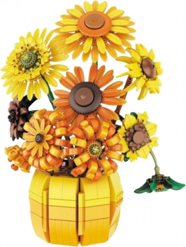 Élethű napraforgócsokor vázában építőkészlet 1009 darabból. Elegáns dekoráció és relaxáló építés tiniknek és felnőtteknek. Minőségi műanyag, közepes nehézség.