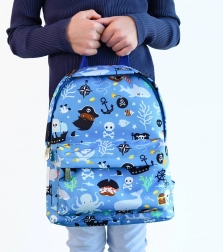 A bájos, kalóz témájú hátizsákot a gyerekek imádni fogják, a szülők pedig értékelik az átgondolt kivitelezést. A fő rekesz elfér benne az uzsonna, a kulacs és az apróságok, míg az elülső cipzáras zseb mindent kéznél tart. Az ergonómiát a párnázott vállpántok és a kényelmes hátpanel biztosítják, a mellkasheveder pedig segít a pántokat a vállon tartani futás közben is.