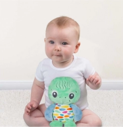 A Playgro Eco Play sorozatából származó, bájos plüss teknőcbarát minden 3 hónaposnál idősebb babának örömet szerez. Újrahasznosított PET-palackokból készült, így nemcsak puha és biztonságos, hanem környezetbarát is. Az extra puha anyag, a színes minták és a barátságos dizájn támogatják a vizuális észlelést, az érzékszervi fejlődést, valamint nyugalmat és biztonságérzetet nyújtanak ölelés és alvás közben.