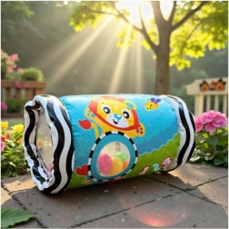 Hengeres formája könnyen gurul, így ösztönzi a babát a nyújtózkodásra, forgolódásra és mászásra, ezáltal fejleszti a nagymozgásokat és a koordinációt.
