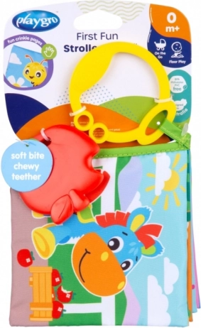 Tegye változatosabbá minden sétát egy okos játékkal, amely támogatja a baba érzékszervi fejlődését. A színes állatillusztrációk, a zizegő lapok és a kontrasztos elemek stimulálják a látást, tapintást és hallást, míg a puha rágóka gyengéden masszírozza az ínyt. A praktikus sárga csíptető gondoskodik róla, hogy a könyv a helyén maradjon és mindig kéznél legyen.