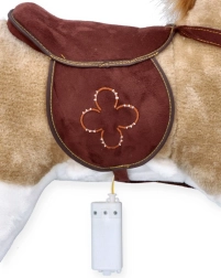- A hasban biztonságosan elhelyezett elemes modul található. 2× AA elem behelyezése után (nem tartozék) a lovacska hangokat ad ki: