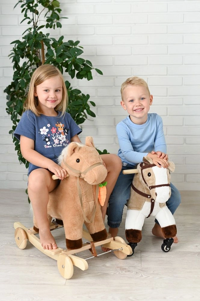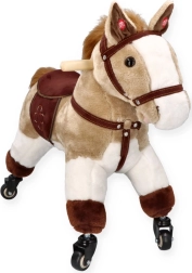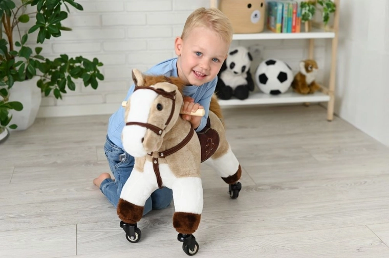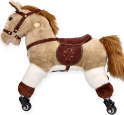 Stílusos lovaglótárs a kis lórajongóknak. Masszív felépítés, puha plüss és fürge kerekek hívogatnak lakásbeli és folyosói utazásokra.