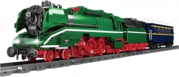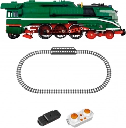 A modell kiemelkedik a precíz részletekkel: nagy piros kerekek, karcsú mozdonytest és stílusos színakkordok zöld, piros és tengerészkék árnyalatokban, fekete és ezüst elemekkel kiegészítve. A 2348 darabból álló építés hosszú órákra nyújt szórakozást, miközben fejleszti a műszaki gondolkodást és a türelmet.