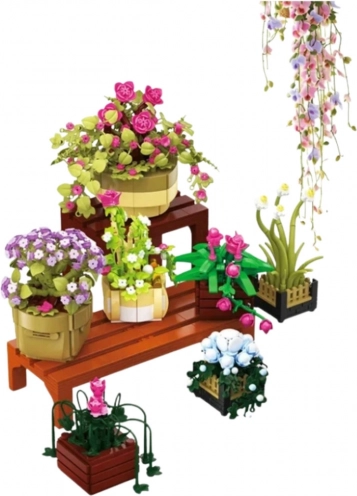 Építőkészlet virágok cserepekben két polccal – 1446 darab